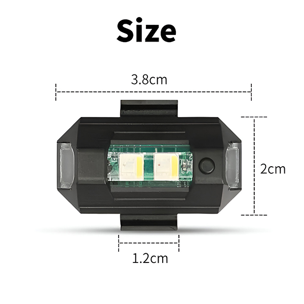 📏 Kompaktno i lagano – 3,8 x 2 cm, ABS kućište, uključen set od 2 svjetla s čičak trakama, gumenim prstenovima i USB kabelom za punjenje.